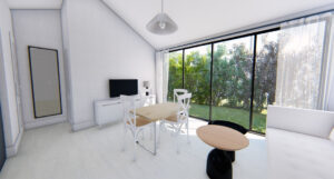 Le décor de cet espace se distingue par son esprit bord de mer, apportant un calme et une douceur uniques, principalement en noir et blanc. Les teintes douces et les matériaux naturels, comme le bois et le lin, jouent un rôle clé dans la création d’une atmosphère sereine.